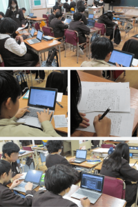 今日は、文章の中にどんな船が出てくるのか、また、それぞれの船のことについて書いているの初めの文と終わりの文はどこか、読み取っていきました。