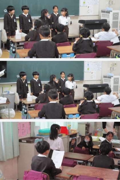 生活科の時間は、まちたんけんで訪ねる場所でインタビューをする練習をしました。