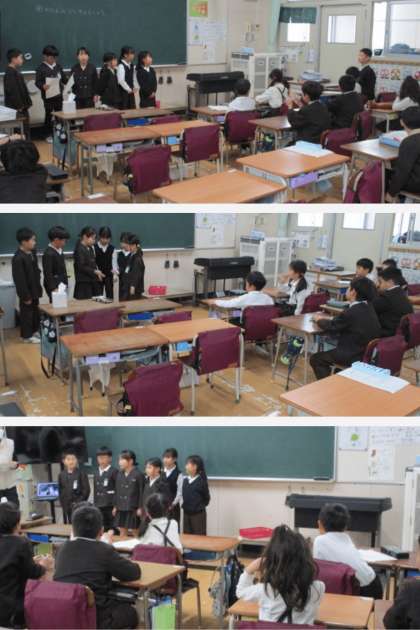 みんなの前でインタビューの練習をして、聞いていた子どもたちがよかったところや直した方がよいところなどアドバイスしていました。