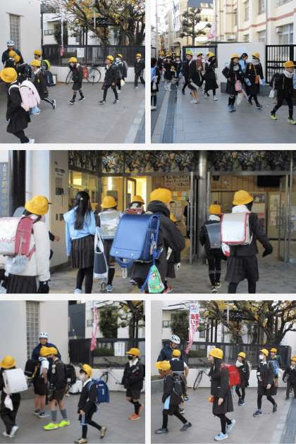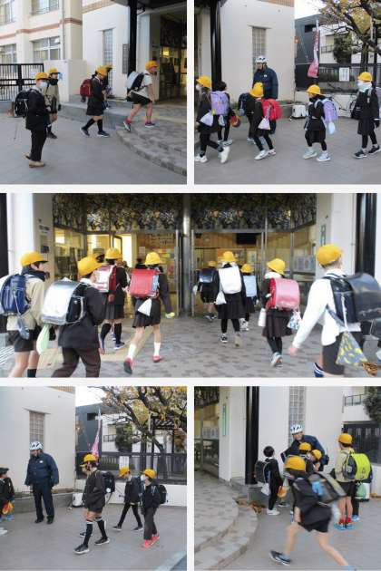 今日も警察官の方が、玄関で子どもたちの登校のようすを見守っていただきました。