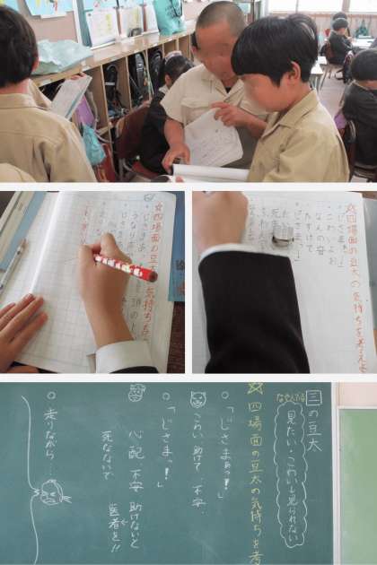 今日は、四場面を読み取り、豆太の気持ちをみんなで考えました。