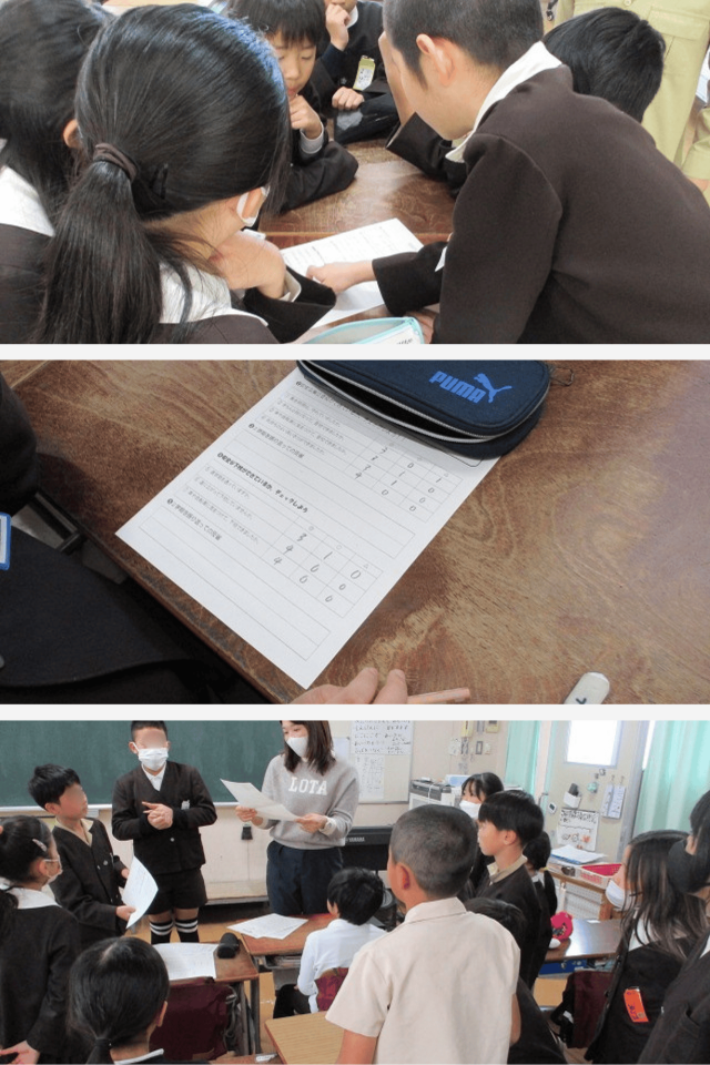 今日は、2学期の登下校をふり返り、集団登校の約束について話し合ったり、集合場所・集合時間・出発時間を再確認したりしながら、毎日安全に登下校できるようにどのようにすればよいか、高学年のリーダーを中心に意見を出し合いました。