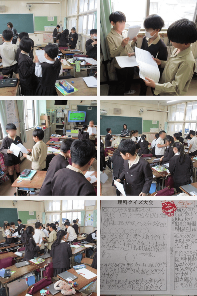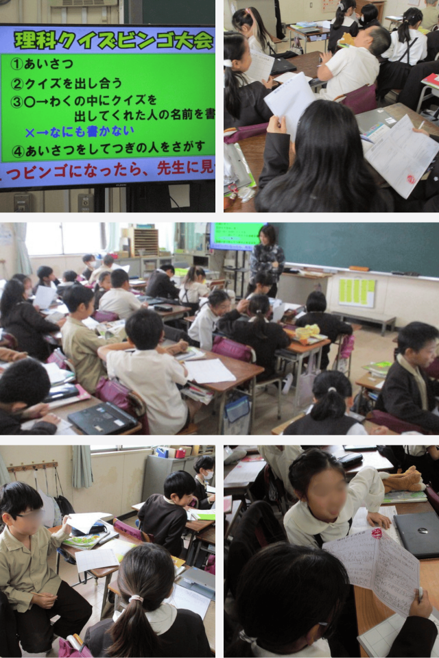 理科の時間は、学習のまとめとして、一人一人がつくった「理科クイズ」を出し合って、「理科クイズビンゴ」をしました。
