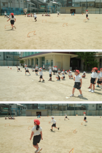 子どもたちは馬になりきって、校庭や体育館を力強く疾走!コース途中のさまざまな障害物も、みんなで「うま」く乗り越えていきます。体力面でも目覚ましい成長を見せてくれる1年生。