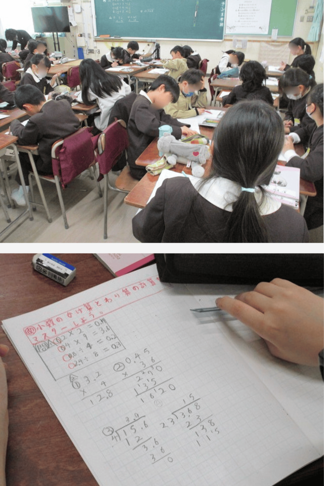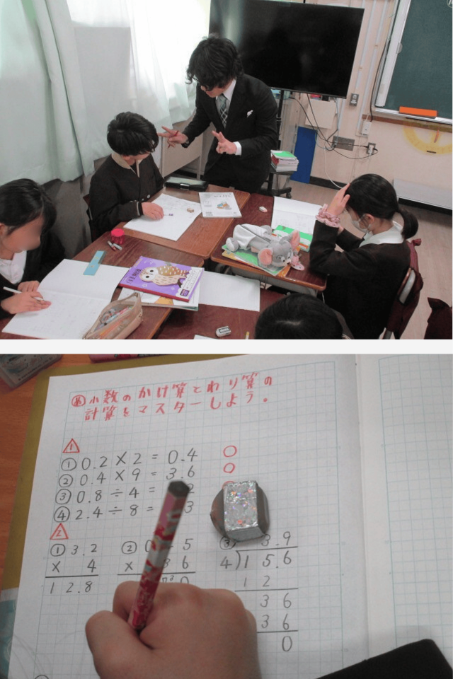 算数科の時間は、小数のかけ算やわり算の計算練習をしています。