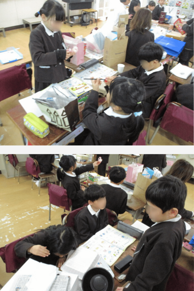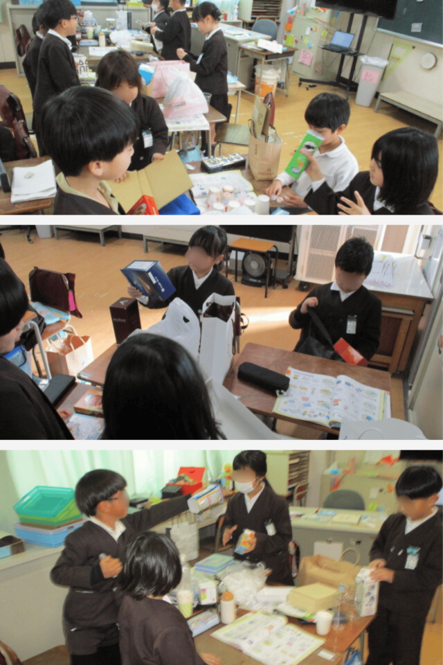 生活科の時間は、廃材を使っておもちゃを作り、みんなで遊びます。