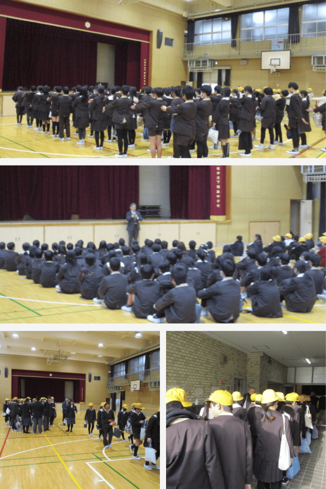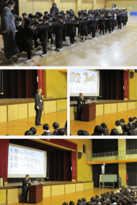 最後に、下福島中学校区4校の子どもたちが講堂に集まり、中学校生活についてのお話を聞きました。