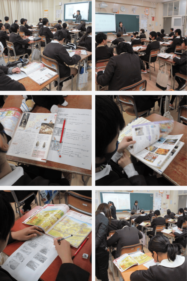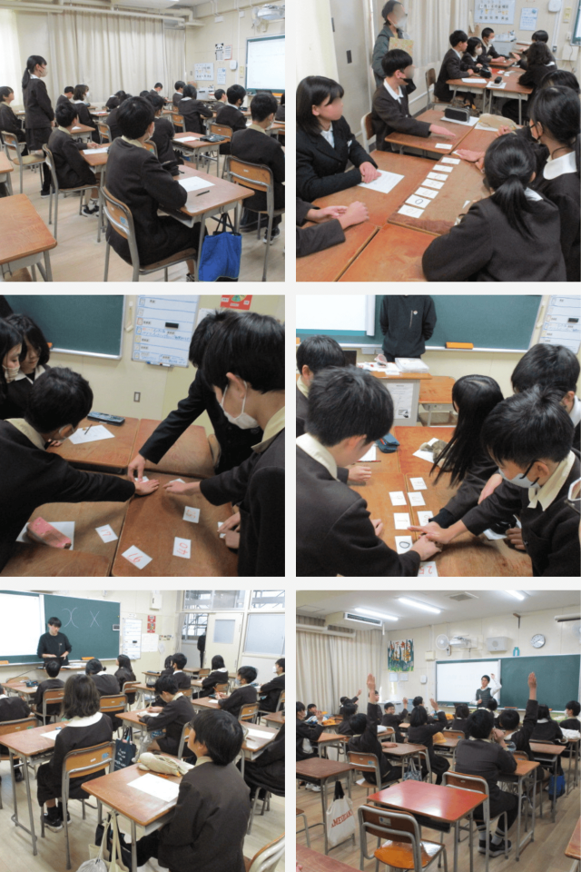 当日はクラスごとに分かれ、中学校の先生方に数学・理科・社会科の授業をしていただきました。