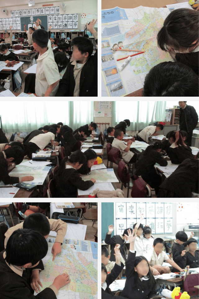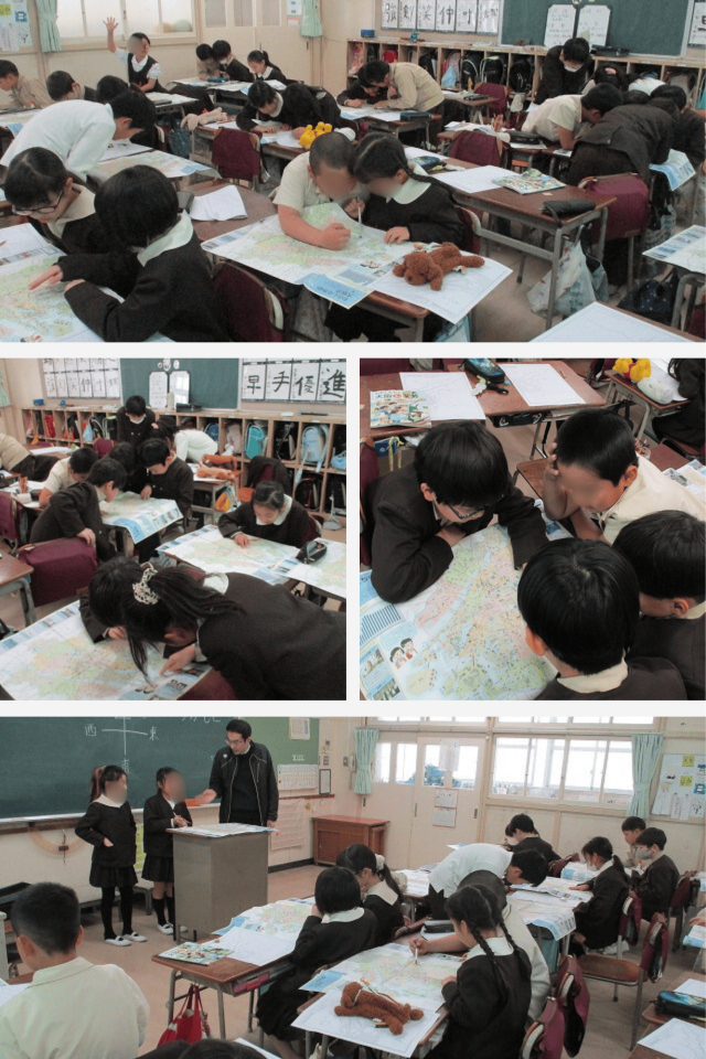 見つけたときには、「見つけた!」「ここやで!」と、教室中に元気な声が広がり、地図を見ることを楽しみながら学習することができました。
