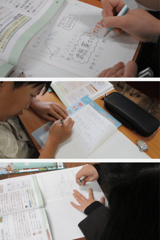 教科書をもとに、当時の社会のようすについて調べ、気づいたことをノートにまとめていました。