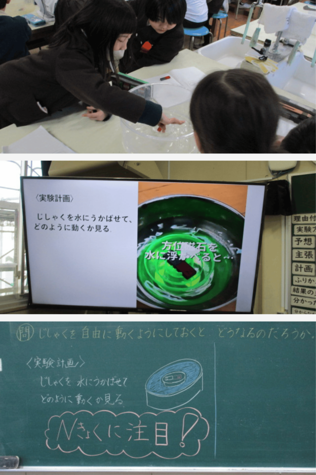 3年生は理科で、「じしゃくを自由に動くようにしておくと、どうなるのだろう」という学習に取り組みました。