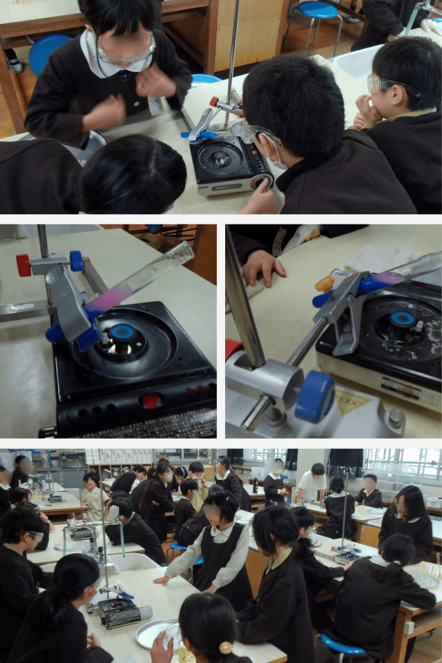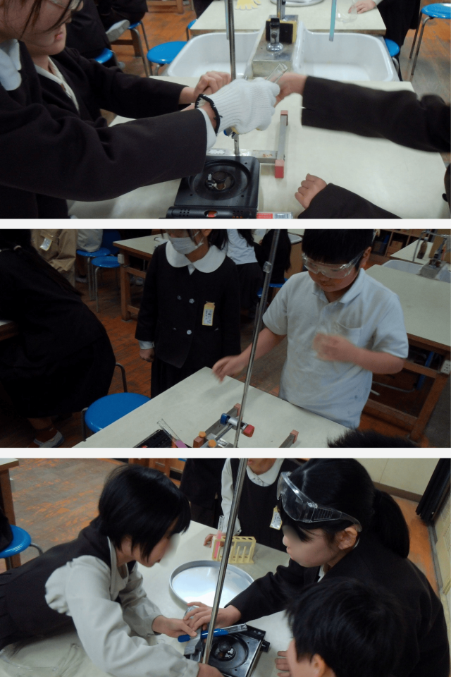 理科の時間に、4年生が水の温まり方について実験を行いました。