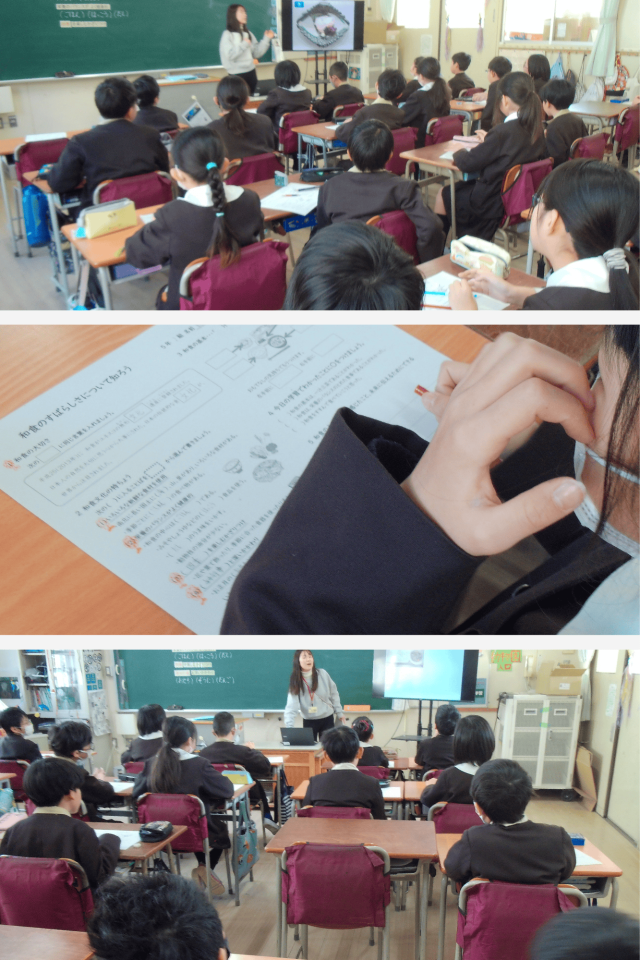 和食の特徴や、栄養のバランスのよさ、季節の食材を大切にすることなどについて学びました。