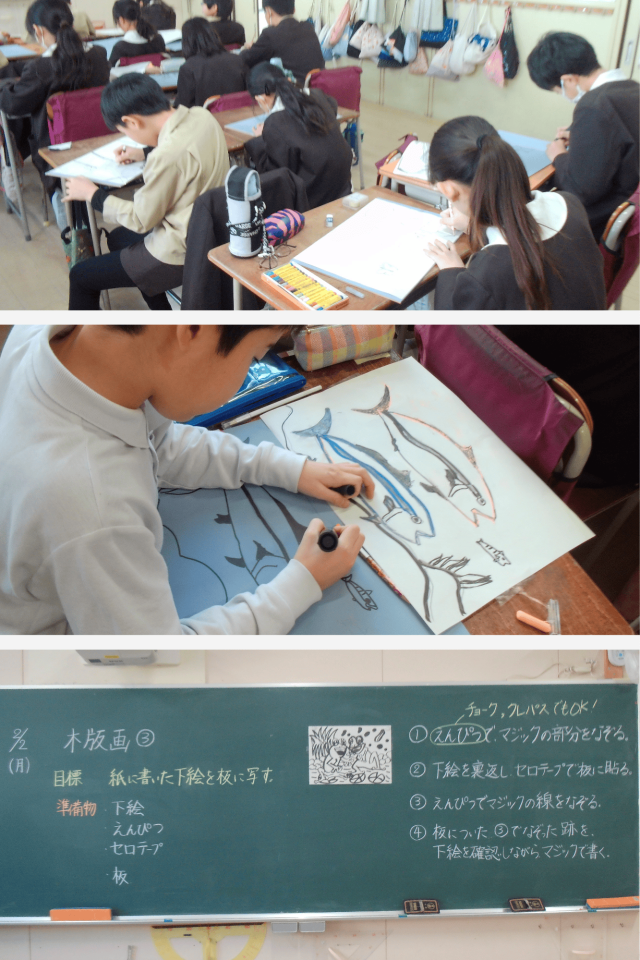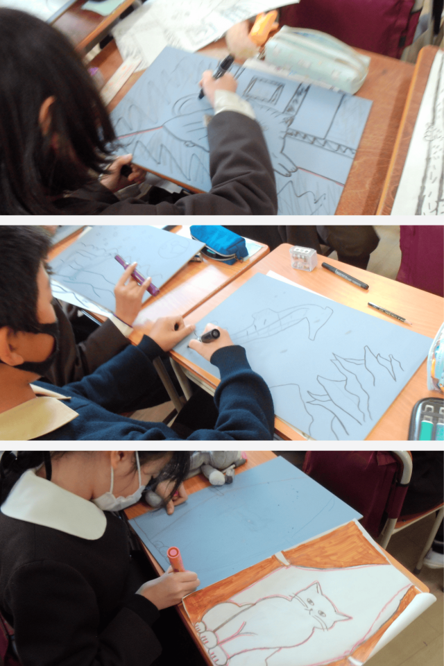 一人一人が動物の特徴を考えながら、丁寧に下絵を写していました。