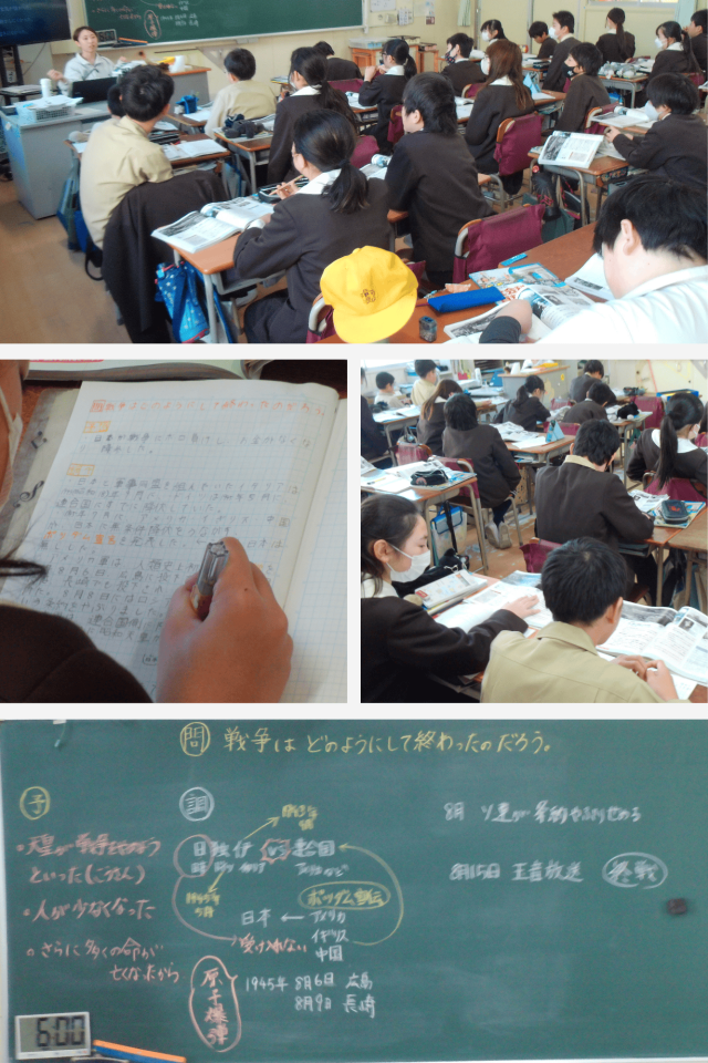 社会科では、戦争がどのように終わったのかについて学習しました。