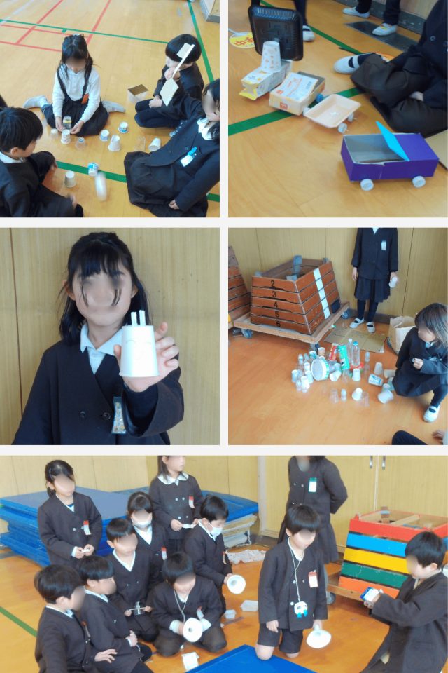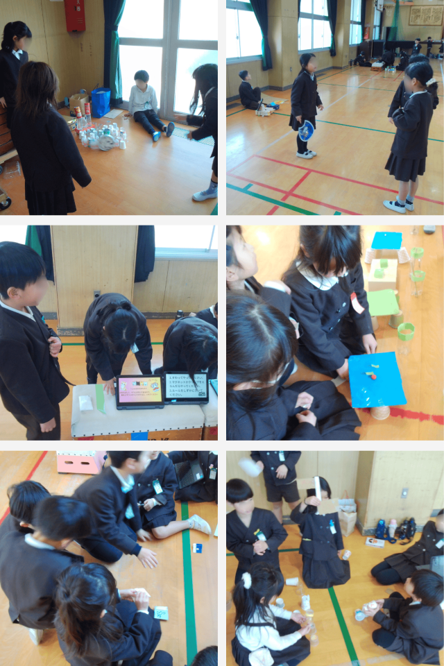 1年生は、目をかがやかせながら、何度も遊びにちょうせんしていました。