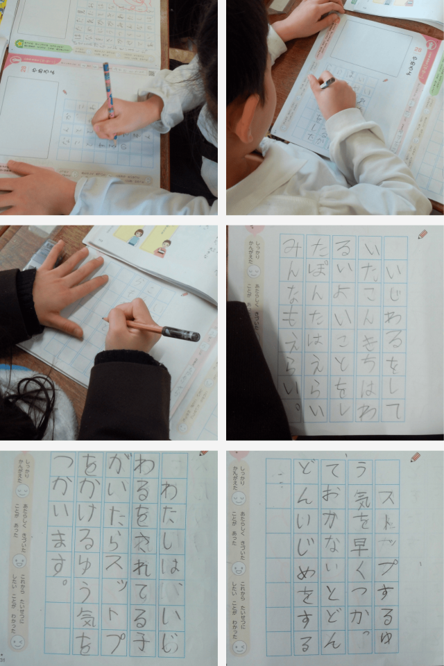 「いやだな」「かなしいな」という気もちに気づいたり、「ストップをかける勇気」の大切さに気づいたりする姿が見られました。