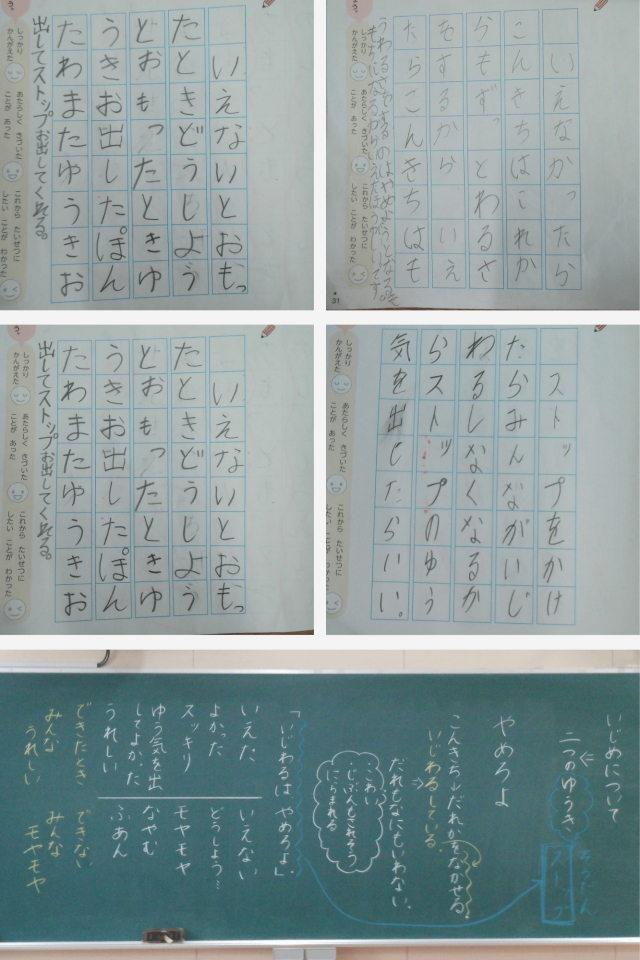 道徳の時間に、「やめろよ」というお話を通して学習しました。