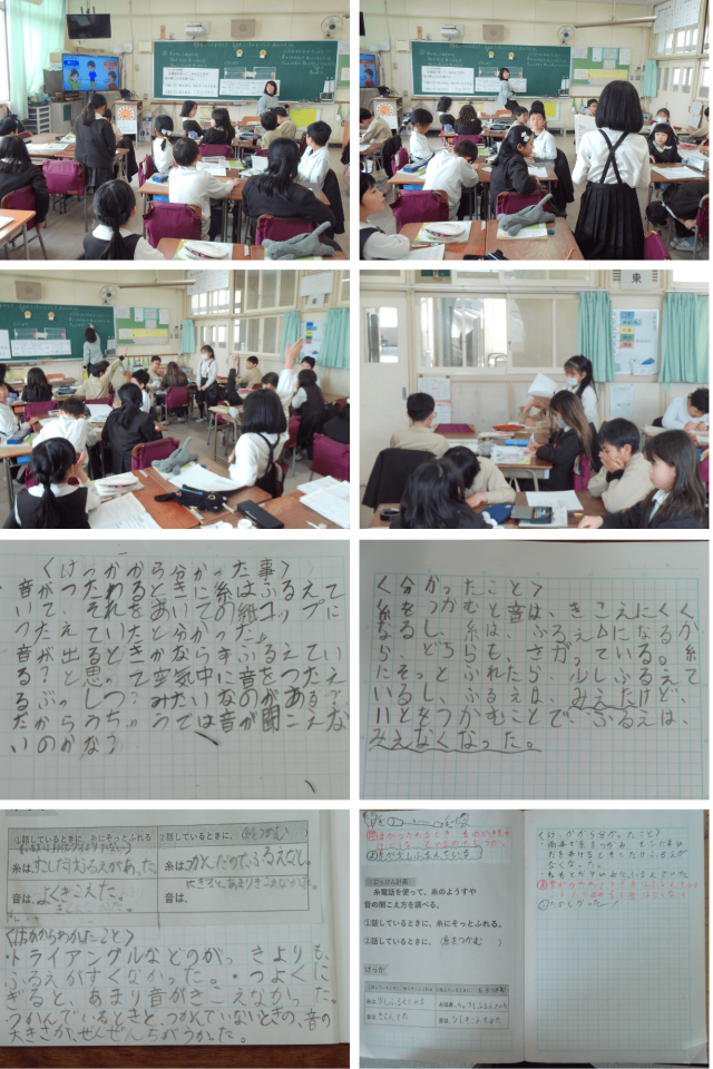 実際に見て、さわって確かめる活動を通して、音はもののふるえによって伝わることを、楽しく学ぶことができました。