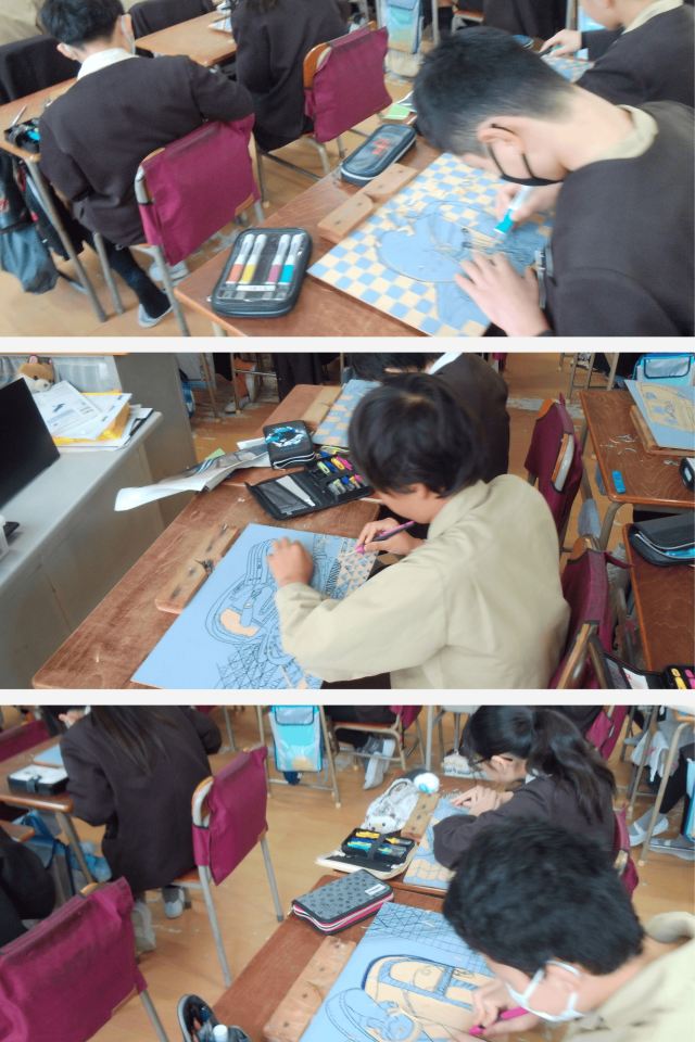 6年生は図画工作科で、ランドセルを題材にした版画に取り組んでいます。