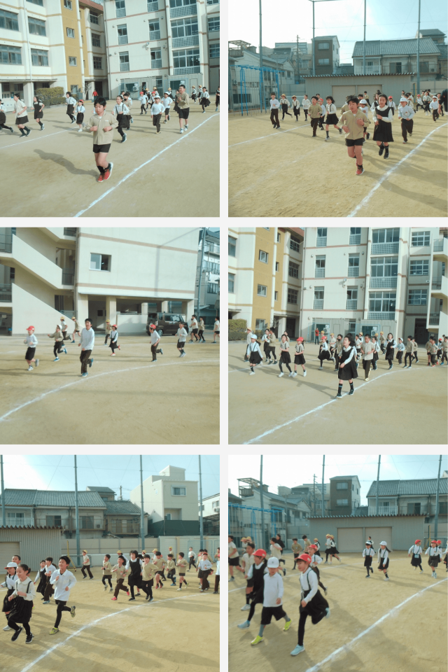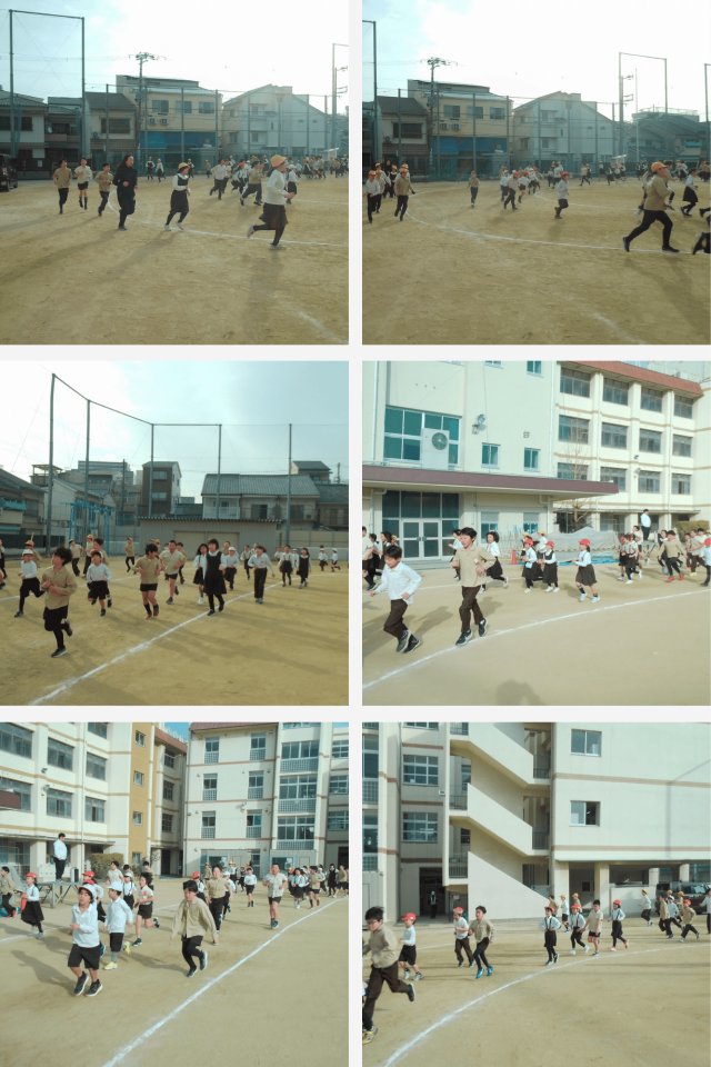朝の会の時間、子どもたちはかけ足運動に取り組んでいます。
