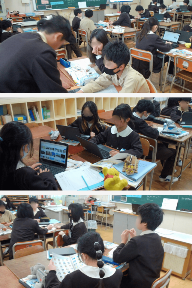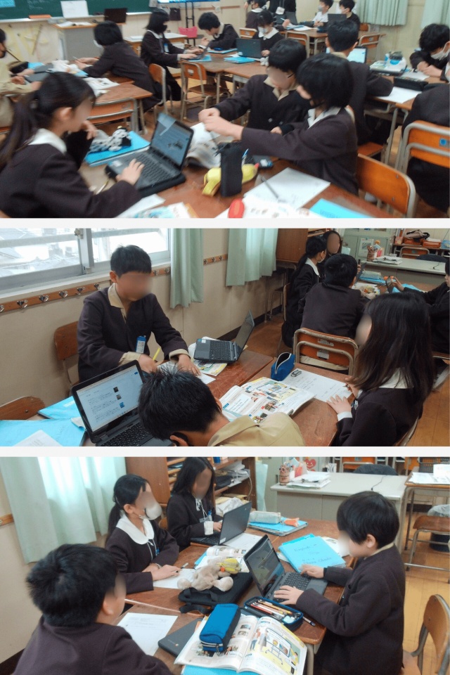 子どもたちは、「どんな場所を紹介しようかな」「どんな言い方をすると伝わりやすいかな」と考えながら、英語で表現する練習をしています。