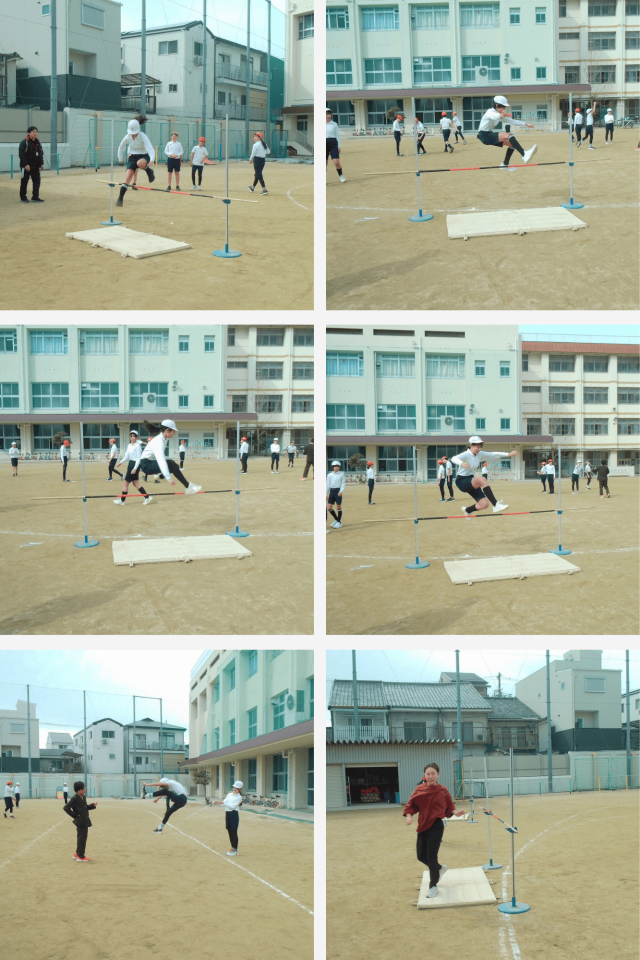 助走のリズムや踏み切りの位置を確認し、自分に合った歩数やスピードを探りました。