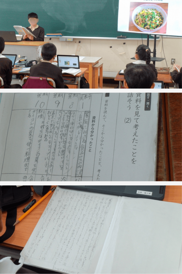 発表の場面では、事実と自分の考えを結び付けて話す姿が見られました。