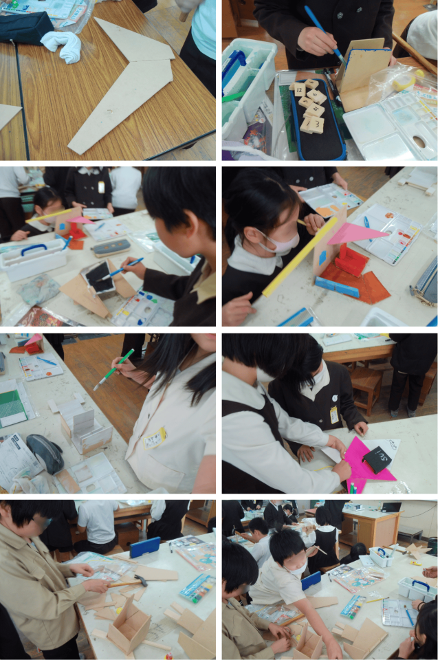 図工科では、「カクカク板を組み合わせたら」の学習に取り組んでいます。