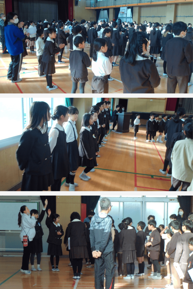 6年生が気持ちよく退場できるように、立つ位置や動き方を一つ一つ確かめながら進めました。