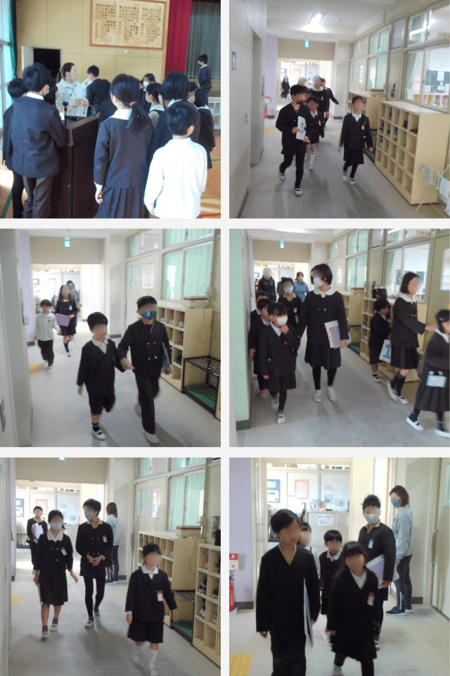 集会の後には、新しいリーダーとなる5年生が1年生の教室まで付き添っていく姿が見られました。