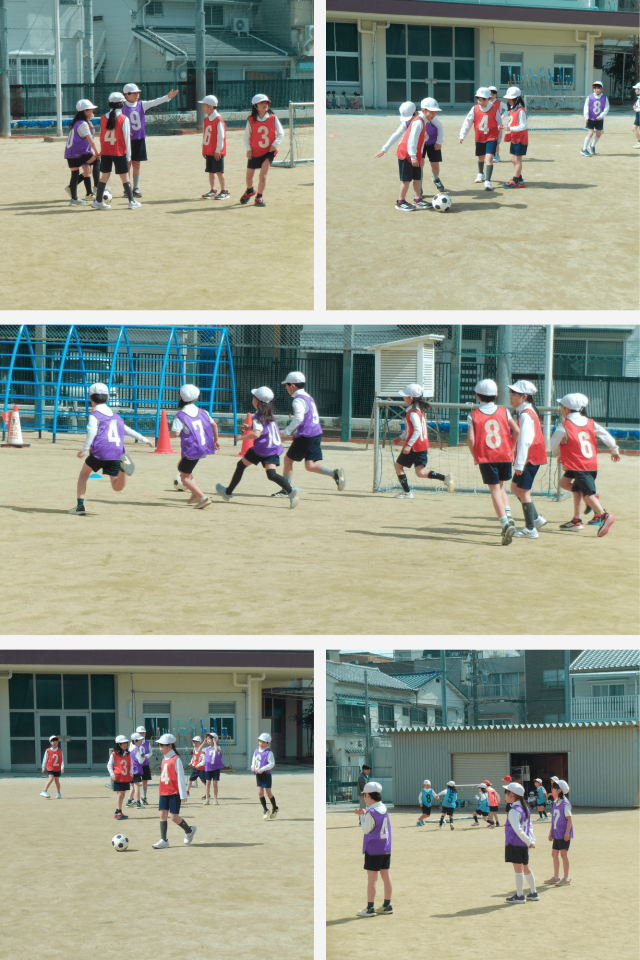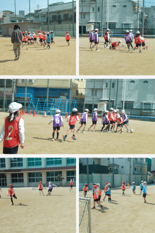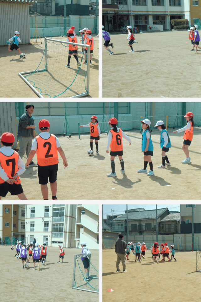 ボールを一生けんめい追いかけながら、シュートをねらう子どもたちの元気な声が運動場に広がっていました。