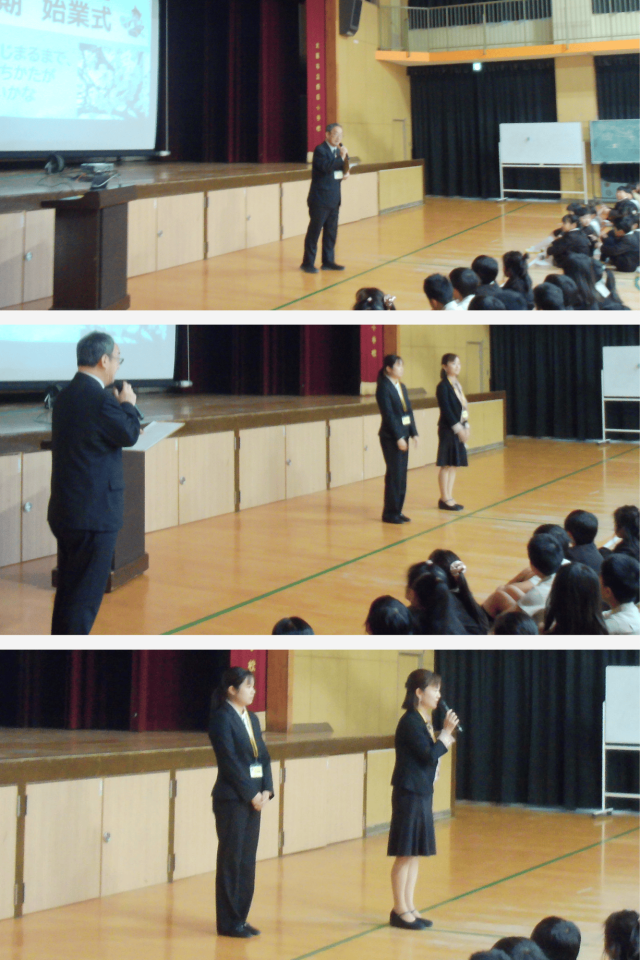 子どもたちが講堂に集合し、いよいよ新学期のスタートです。