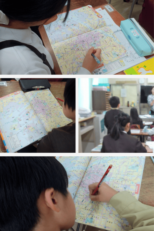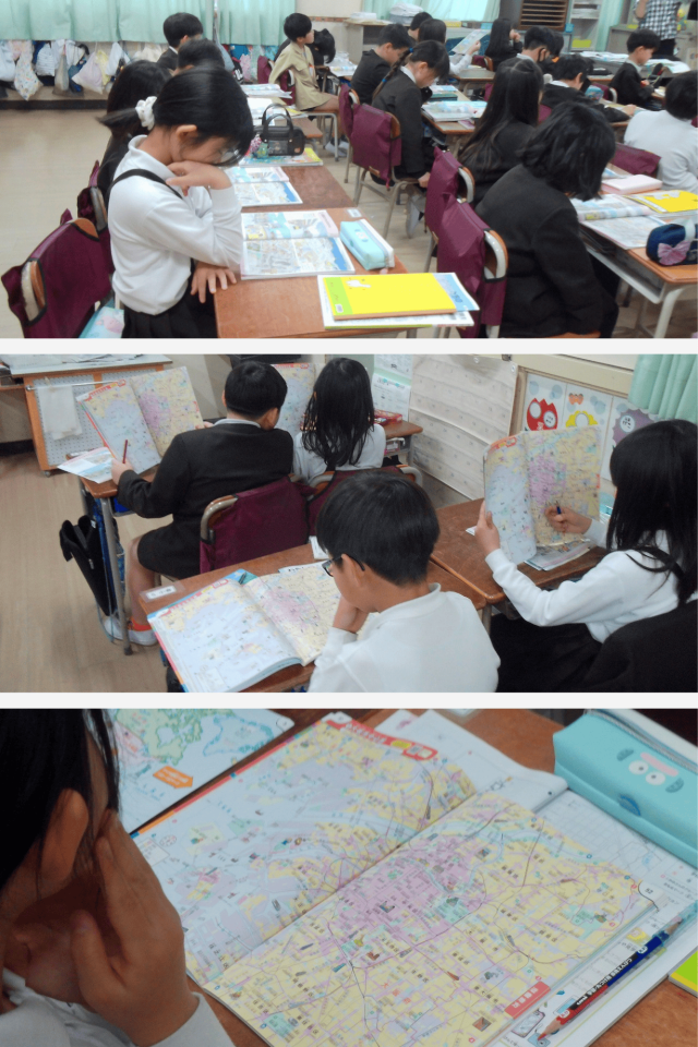 学習の最後には、地図帳を使って大阪市のようすを眺めました。