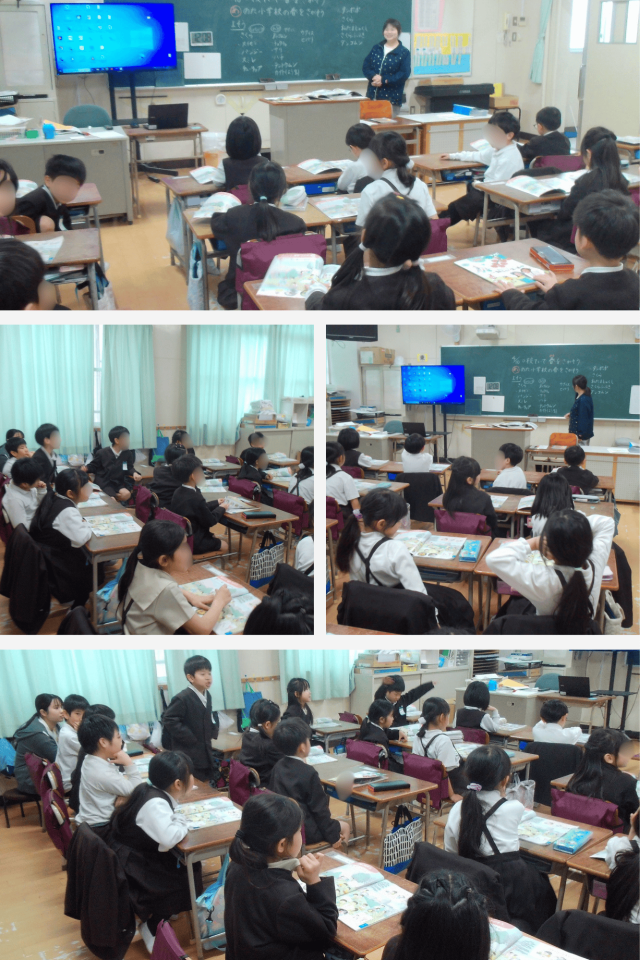 子どもたちは、「パンジーがさいていたよ」「ちょうちょを見たことがある!」など、思い出しながらたくさんの春を発表していました。