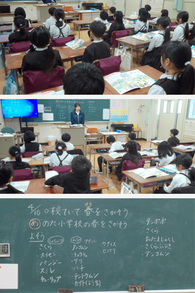 天気のよい日には、実際に校庭に出て、春を見つける活動につなげていきます。