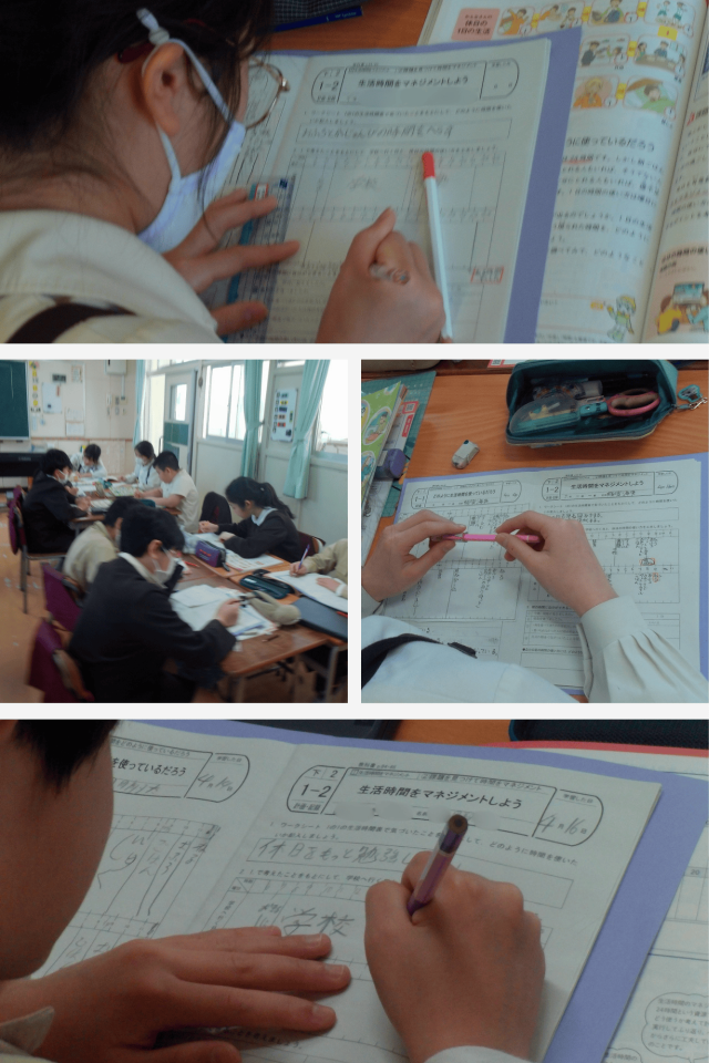 家庭科では、「生活時間をマネジメントしよう」の学習を行いました。