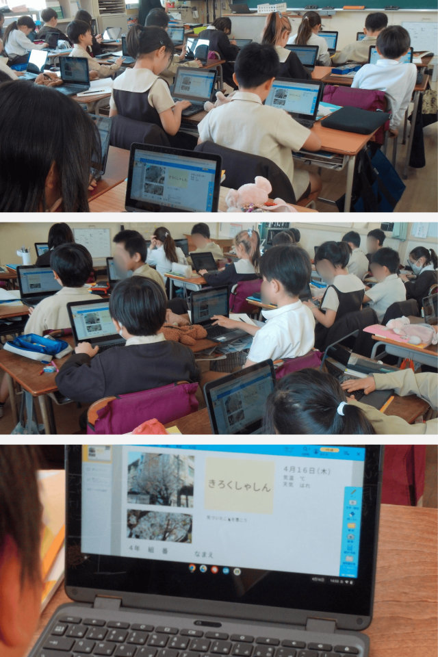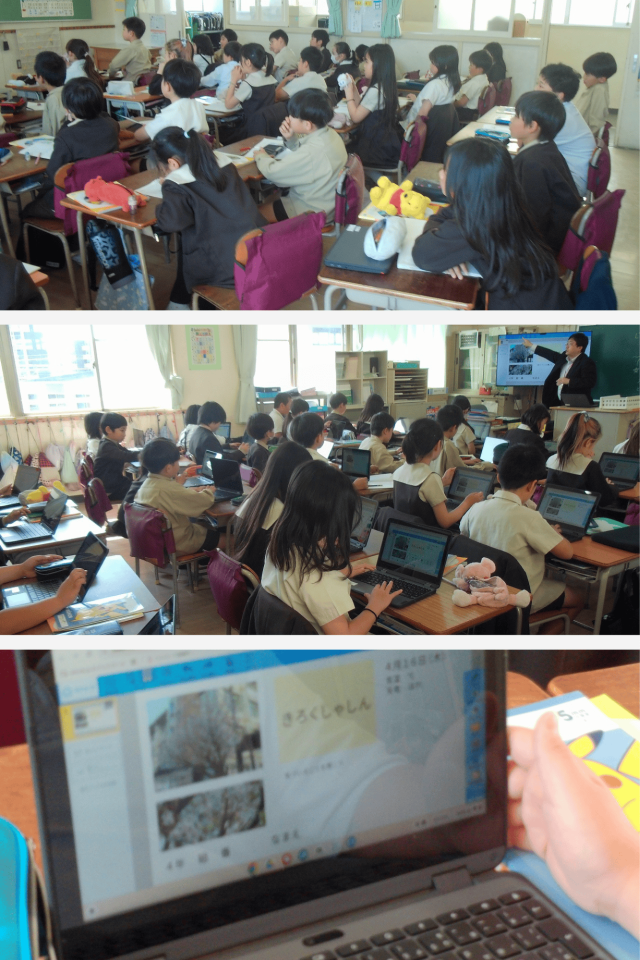 最後に、学習用端末を使って、学校に咲く春の桜のようすをまとめました。