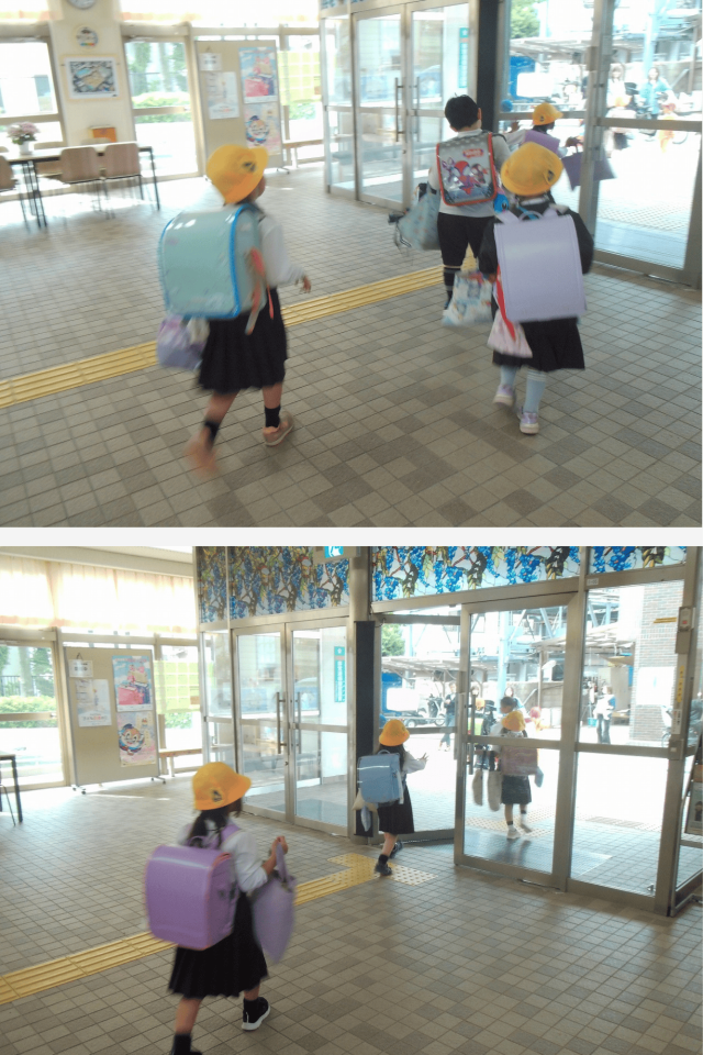 「また明日ね」と声をかけ合いながら、友だちといっしょに帰る姿が見られました。