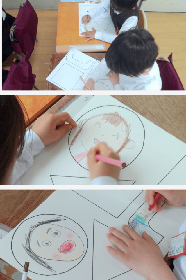 1年生では、「自己紹介かばんを作ろう」の学習に取り組んでいます。