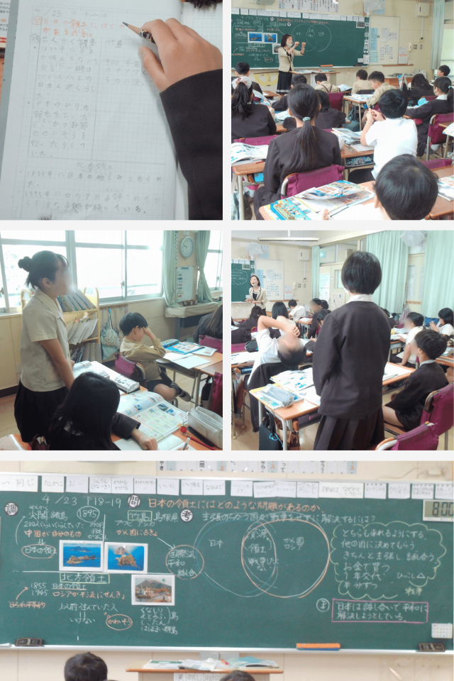 社会科では、「日本の領土にはどのような問題があるのだろう」というテーマで学習しました。
