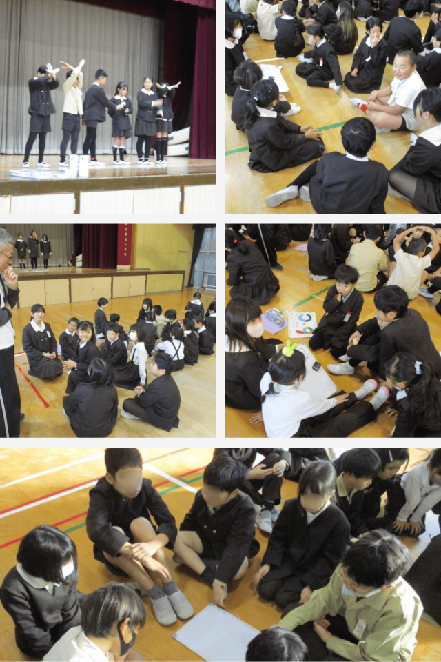 今朝の児童集会は、全校の子どもたちが講堂に集まって行いました。