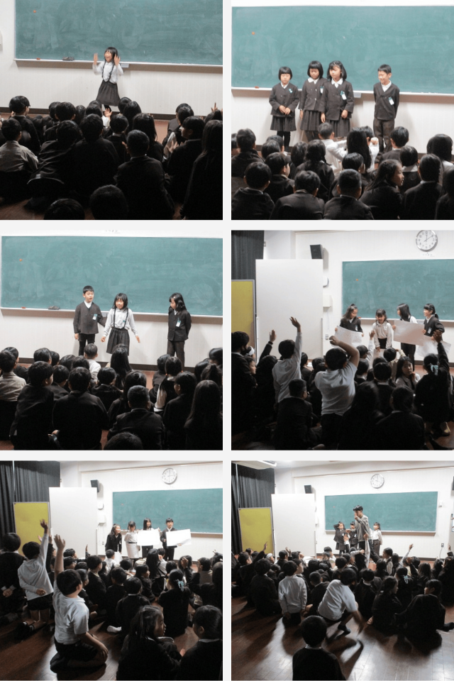 グループで協力して取り組み、クイズやダンス、お笑い、マジック、劇などを披露しました。