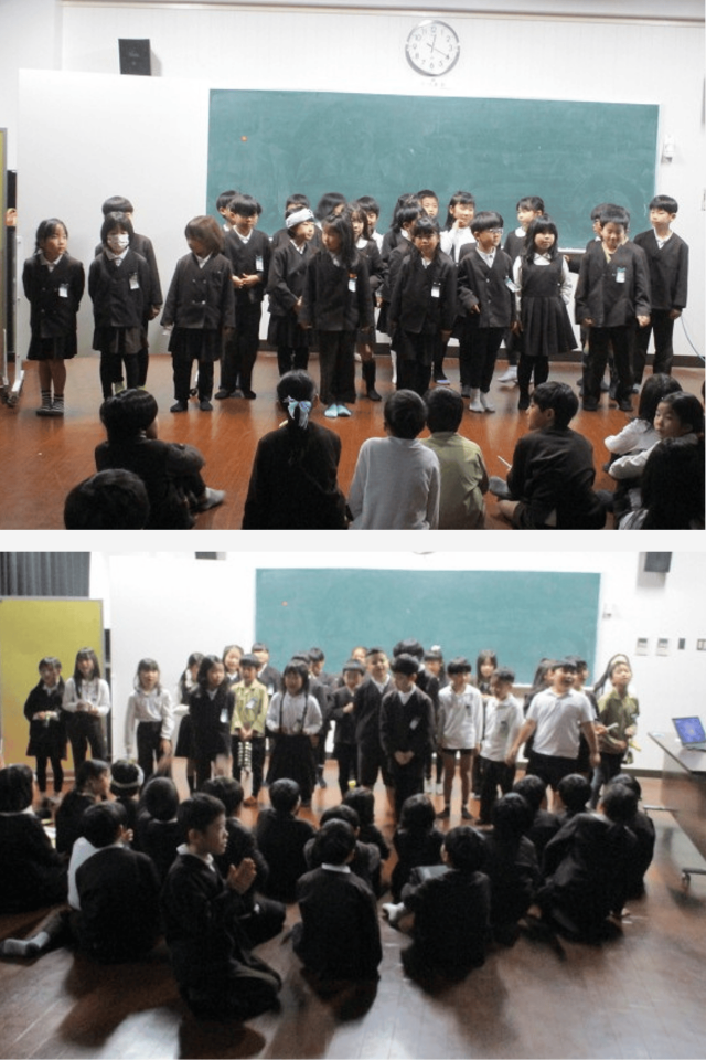 終業式を明日に控え、2年生全員で多目的室に集まって2学期のお楽しみ会をしました。