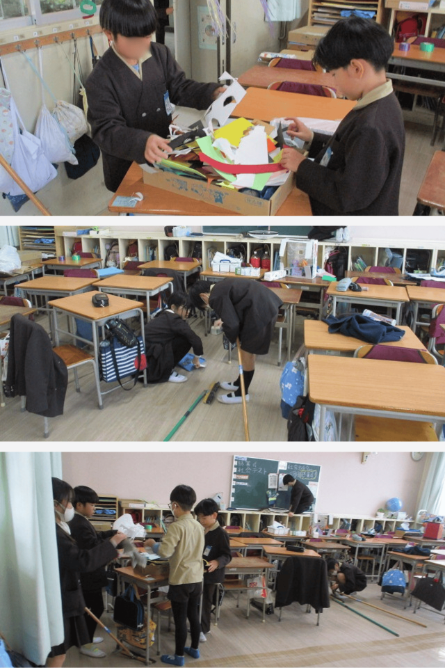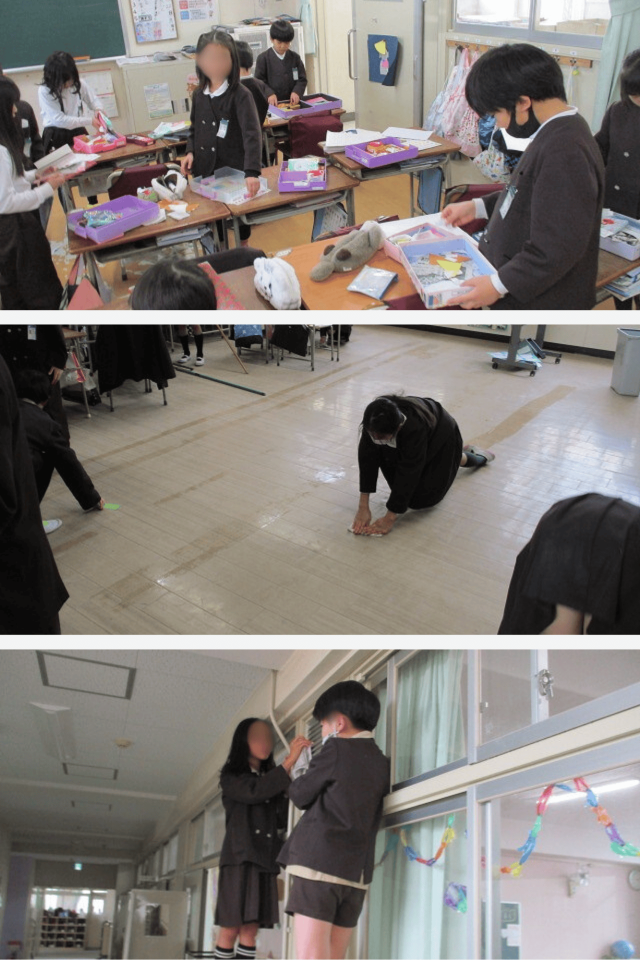 子どもたちは、教室の大掃除を隅々までがんばっていました。