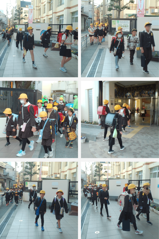 通学路では、地域の見守り隊の方々が子どもたちを温かく見守ってくださり、子どもたちも「おはようございます」とあいさつをしています。