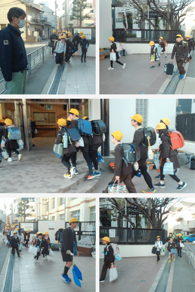 通学路では、地域の見守り隊の方々が子どもたちを温かく見守ってくださり、子どもたちも「おはようございます」とあいさつをしています。