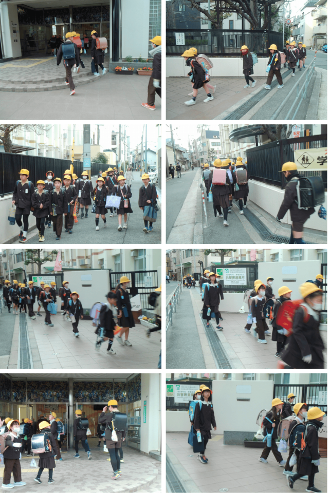 通学路では、地域の見守り隊の方々が子どもたちを温かく見守ってくださり、子どもたちも「おはようございます」とあいさつをしています。