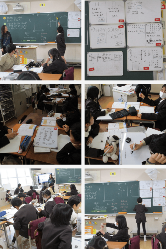 今日の問題は、「子どもが1mおきにならんで人文字をつくります。L字やH字をつくるためには、子どもが何人ならぶとよいか」。