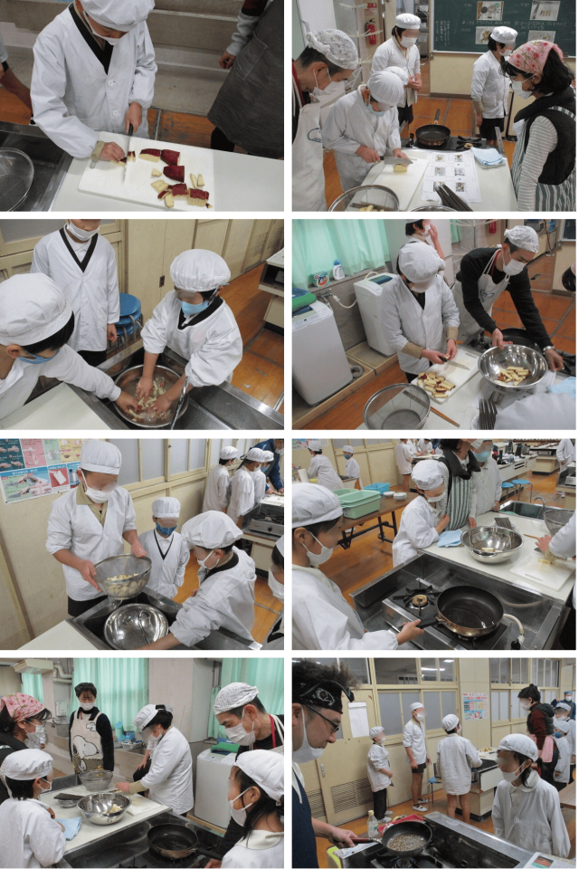 包丁を使ったり、コンロに火をつけたりする経験が少ない子どもたちもいましたが、5・6年生が中心になって協力しながら調理を進めました。